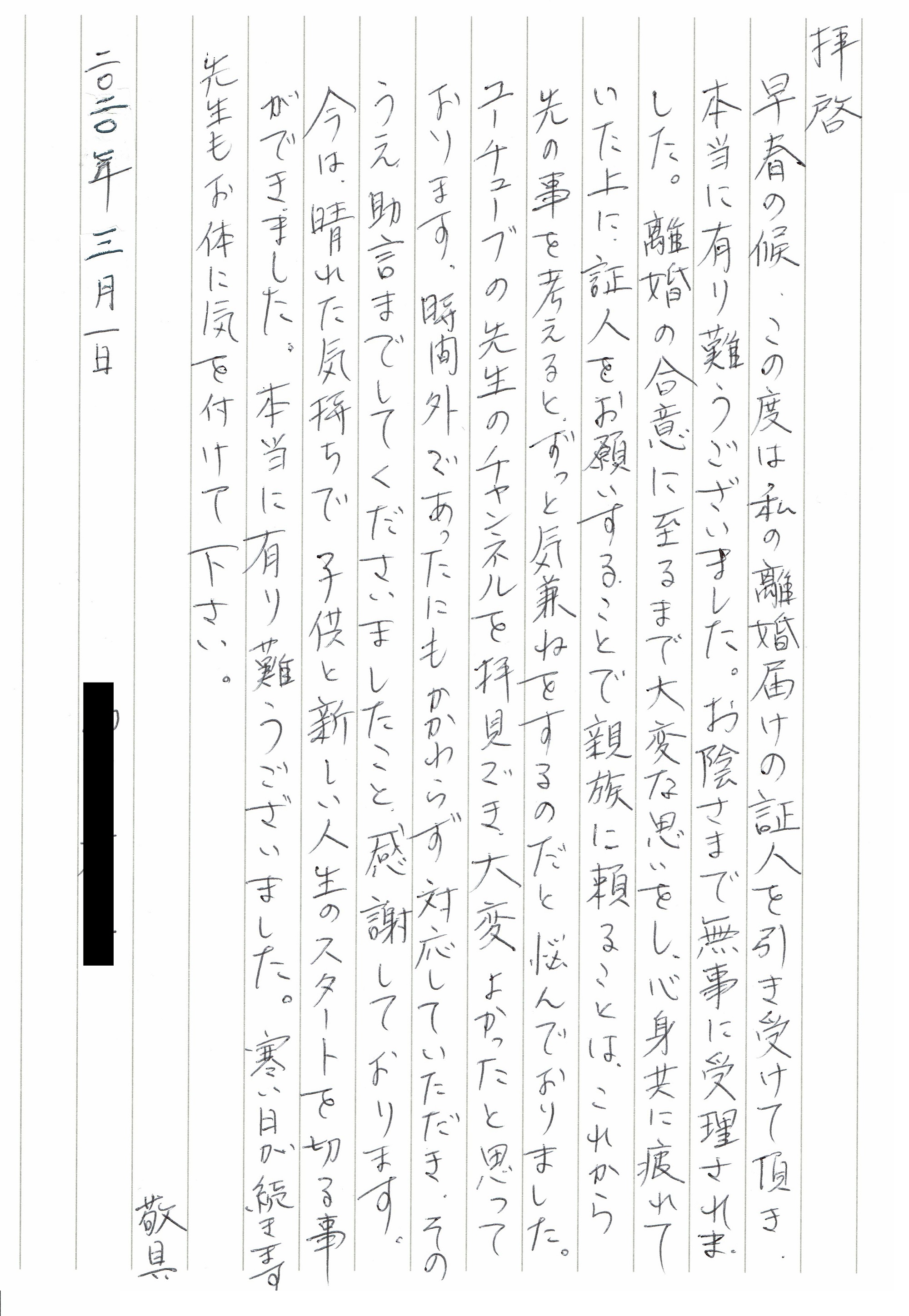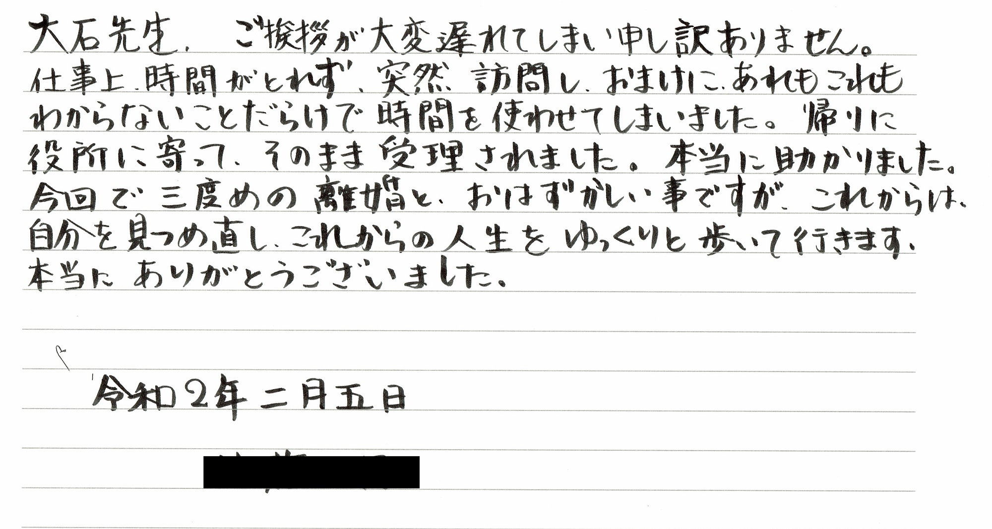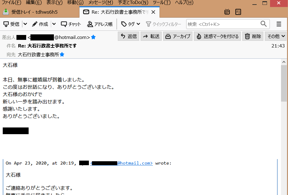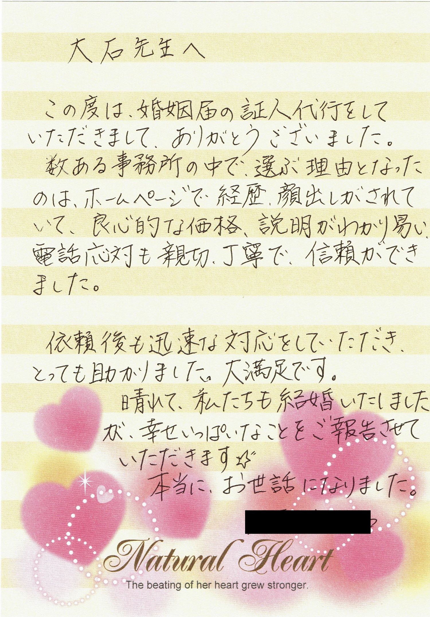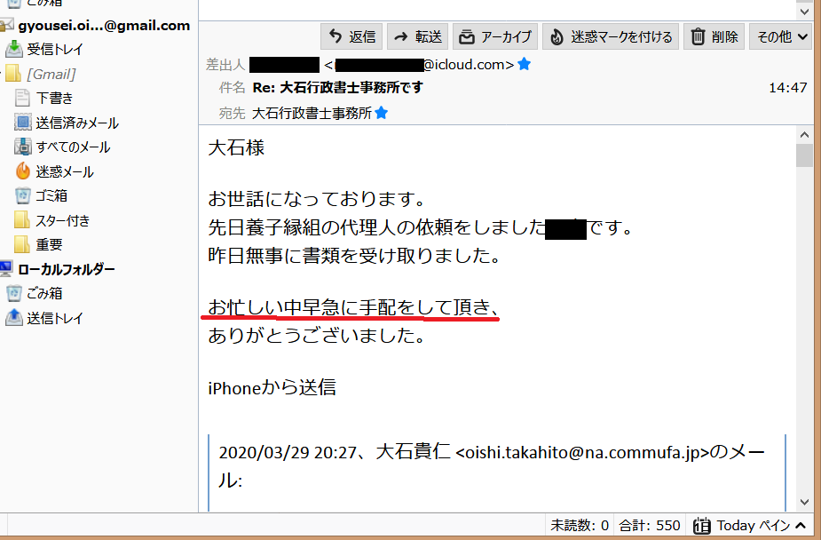 無事に受理された旨、お手紙までいただきました。本当にありがとうございました。