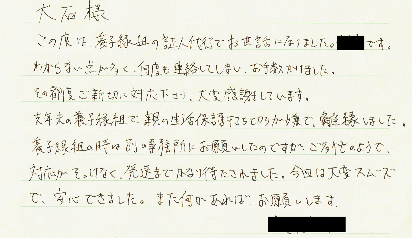 証人代行サービスをご利用になったお客様の声を、一部ご紹介いたします。