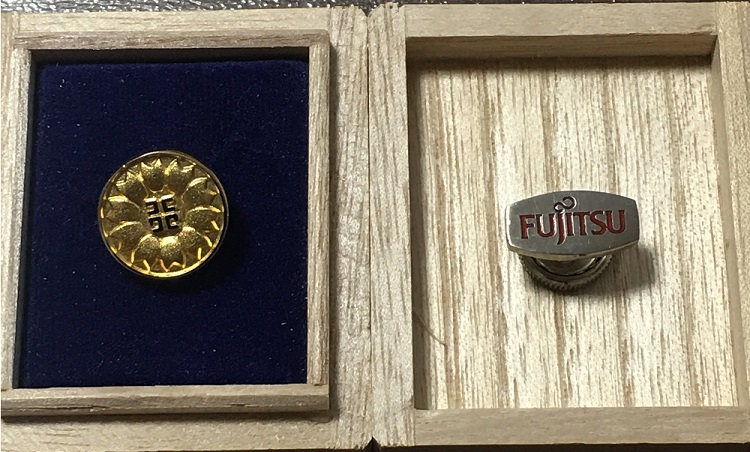 証人代行サービスはお客様の個人情報をパソコンで管理します(どの業者様も同様)。行政書士である私は、富士通グループにて、コンピューターのエンジニアとして勤務した経験を活かし、上記に加え、情報漏洩を確実に防ぐ方法で管理をしております。(画像左:行政書士バッジ、右:富士通バッジ) |